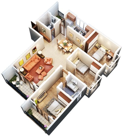 該戶型做了明顯的動靜區分設計,三間臥室位于房屋的一側,整齊排列,另一側中,客廳與生活陽臺、廚房、衛生間和餐廳也左右區分,賦予了每個房間獨立的功能性,在日常生活中帶來的是一種便捷、舒適的感受。該戶型同樣在客廳與主臥設計了兩個寬敞的景觀陽臺,增加戶主生活舒適度。三面采光的設計,讓整個房屋的通風及每個房間的采光都不受影響。
