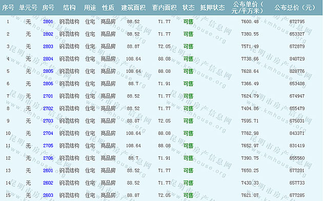 根據云南省物價局關于發布《云南省商品房銷售明碼標價實施細則(試行)》的通知,現將瀚林瀾山項目商品住房的準售房源及每套房屋價格向社會公布,房地產開發企業應嚴格按照公布價格,商品房銷售明碼標價實行一套一標。商品房經營者應當對每套商品房按照建筑面具進行明碼標價,否則,房產登記機關不予登記備案。瀚林瀾山·湖山名苑Ⅱ準售房源及房價信息如下: