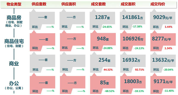 總結:本周商品住宅市場成交情況下跌較為嚴重,但價格依然堅挺,一直在8000元/㎡左右浮動,漲幅變化幅度不大。