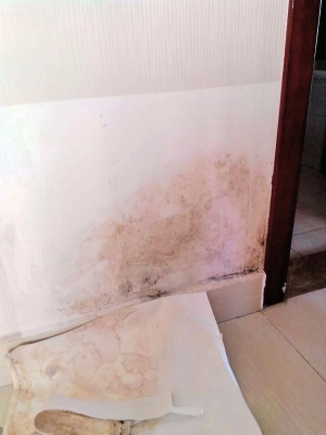 “不久,物業公司就派人來家里查看情況,取下了墻紙,說是干了之后再過來貼上新墻紙。”陳先生說著,還翻出手機里的圖片。一張圖片上清晰可見,撕下的墻紙和墻上一隅沾滿了紅色污跡,翻開另一張圖片時說:“換了不到一年,墻紙又不行了。”他憤憤地說,第一次沒想到會有如此嚴重,現在才知換墻紙只是權宜之策,可能是哪里漏水了,維修管道才能解決根本問題。