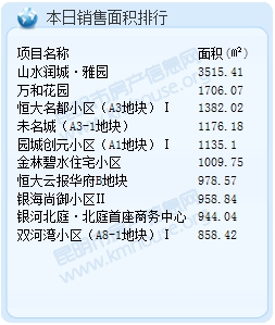 截至3月16日23:13,根據昆明房產信息網數據顯示,2016年3月16日昆明商品房成交套數488套。較之昨天的652套,減少了164套;成交面積39855.98㎡。今日排行榜,成交套數排行前三的項目分別是:萬和花園:45套;山水潤城·雅園:39套;九夏云水俊園(2#地塊)I:16套。成交面積排行前三的項目分別是:山水潤城·雅園,成交面積:3515.41㎡;萬和花園,成交面積:1706.07㎡;恒大名都小區(A3地塊)I,成交面積:1382.02㎡。