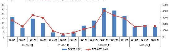 2016年1月-2016年4月昆明商品房成交金額周度走勢圖(備案口徑下)