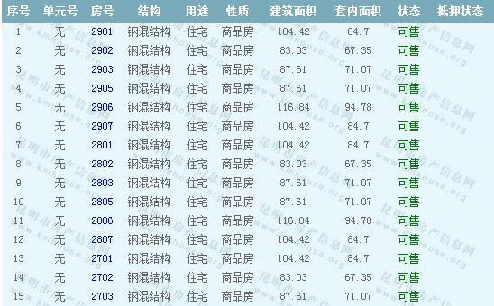 依據(jù)《云南省商品房銷售明碼標價實施細則》,商品房經(jīng)營者應當在商品房交易(銷售)場所的醒目位置放置標價牌、價目表或者價格手冊,有條件的可同時采取電子信息屏、多媒體終端或電腦查詢等方式。商品房銷售明碼標價應當做到價目齊全,標價(示)內(nèi)容真實明確、字跡清晰、標示醒目,并標示價格主管部門12358投訴舉報電話。準售房源信息如下: