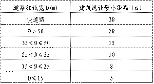 表4-2建筑退讓城市道路規劃紅線最小距離表