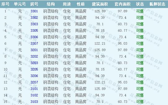 依據《云南省商品房銷售明碼標價實施細則》,商品房經營者應當在商品房交易(銷售)場所的醒目位置放置標價牌、價目表或者價格手冊,有條件的可同時采取電子信息屏、多媒體終端或電腦查詢等方式。商品房銷售明碼標價應當做到價目齊全,標價(示)內容真實明確、字跡清晰、標示醒目,并標示價格主管部門12358投訴舉報電話。準售房源信息如下: