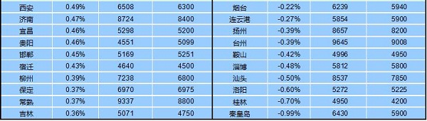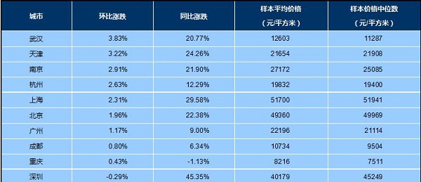 十大城市(新建)住宅價格漲跌情況