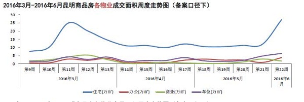 本周住宅成交面積27.01萬方,辦公成交面積3.80萬方,商業成交面積1.70萬方,車位成交面積6.37萬方。本周商品房總存量面積為2425.59萬方。
