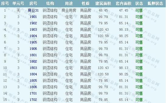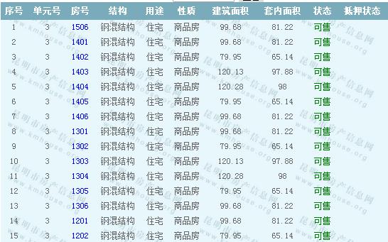 依據(jù)《云南省商品房銷售明碼標(biāo)價實(shí)施細(xì)則》,商品房經(jīng)營者應(yīng)當(dāng)在商品房交易(銷售)場所的醒目位置放置標(biāo)價牌、價目表或者價格手冊,有條件的可同時采取電子信息屏、多媒體終端或電腦查詢等方式。商品房銷售明碼標(biāo)價應(yīng)當(dāng)做到價目齊全,標(biāo)價(示)內(nèi)容真實(shí)明確、字跡清晰、標(biāo)示醒目,并標(biāo)示價格主管部門12358投訴舉報電話。筑友雙河灣1幢—8幢轉(zhuǎn)售房源如下: