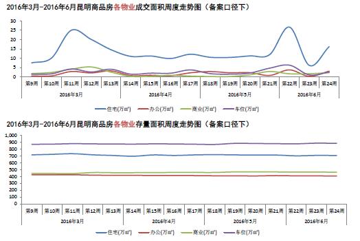 本周住宅成交面積16.25萬(wàn)方,辦公成交面積3.11萬(wàn)方,商業(yè)成交面積2.28萬(wàn)方,車(chē)位成交面積2.65萬(wàn)方。本周商品房總存量面積為2458.19萬(wàn)方。