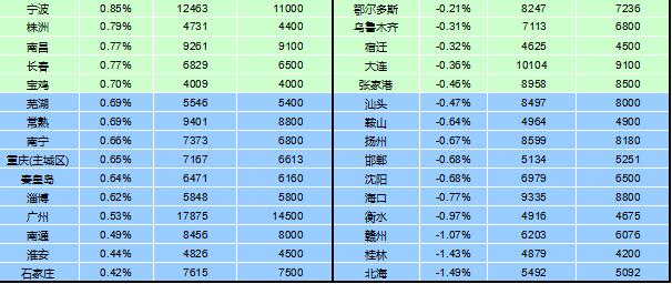 2016年6月,住宅價格同比2015年6月下跌的城市個數為40個,較上月減少5個。其中,三亞、泰州等6個城市跌幅超過5%;大連、成都等19個城市跌幅在2%-5%之間;西安、呼和浩特等8個城市跌幅在1%-2%之間;北海、濰坊等7個城市跌幅在1%以內。