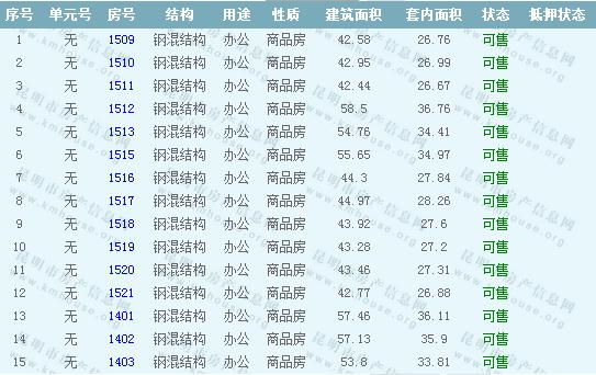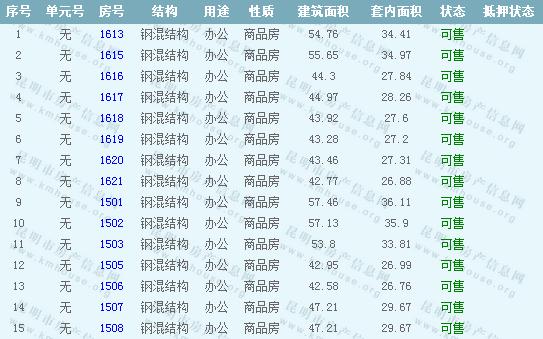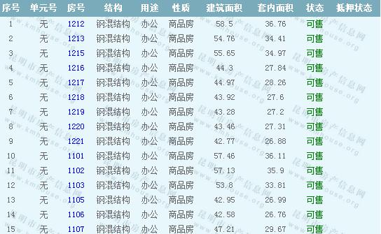 萬宏國際A座辦公準售房源信息如下:
