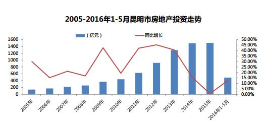 2016年1-5月,昆明房地產開發投資490.12億元,同比增長12.70%;去年以來,國家陸續出臺了降息、降低首付比例、公積金政策調整等一系列政策,經過去年一年商品房銷售市場的溫和回升;今年以來商品房銷售逐步回暖,使房地產開發企業投資信心有所恢復,一部分停滯樓盤被盤活,使得房地產投資增速提升。