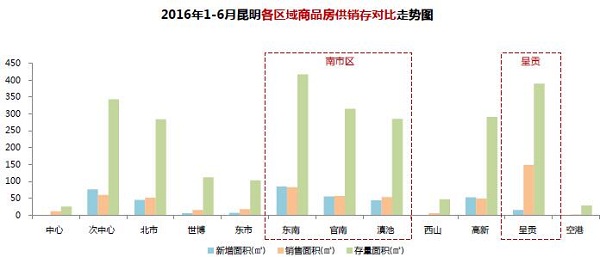 【市場供銷對比】2016上半年呈貢市場銷售占比大幅增加,南市區(qū)供求占比依舊最大