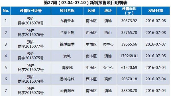 本周新增預(yù)售證7個(gè),預(yù)售面積40.63萬(wàn)方;位于南市區(qū)、西市區(qū)和中市區(qū)。