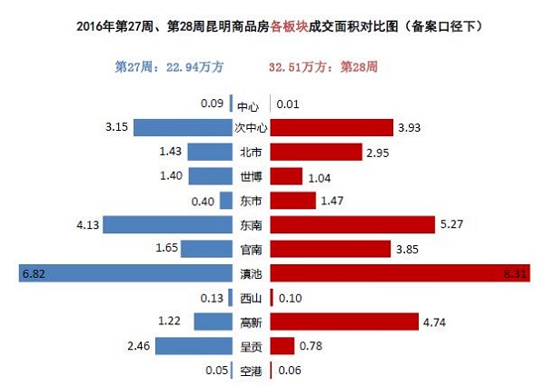 本周成交前三板塊為:滇池、東南、高新,成交面積分別為8.31萬方、5.27萬方和4.74萬方。