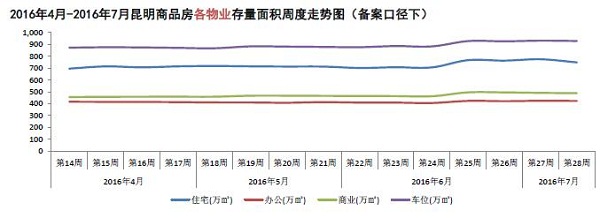 本周住宅成交面積26.34萬方,辦公成交面積1.28萬方,商業成交面積2.41萬方,車位成交面積2.47萬方。本周商品房總存量面積為2588.81萬方。