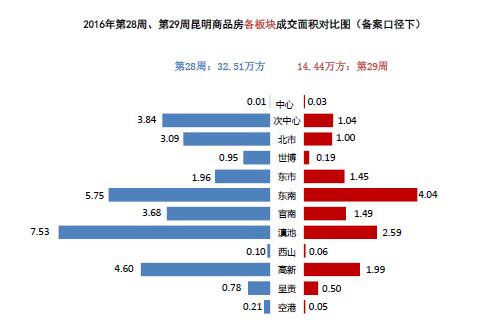 本周成交前三板塊為:東南、滇池、高新,成交面積分別為4.04萬方、2.59萬方和1.99萬方。
