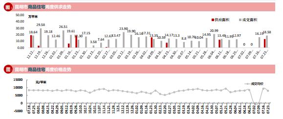 本周昆明全市成交面積20.38萬㎡,環(huán)比下降13.61%;成交套數(shù)為1894套,環(huán)比上漲28.58%;成交均價8756元/㎡,環(huán)比下跌19.58%。