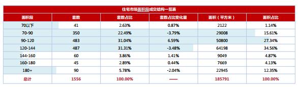 本周成交主力集中于70-90㎡、 90-120㎡、 120-144㎡三個面積段,分別占全周成交套數(shù)的22.49%、 31.04%及31.31%,
