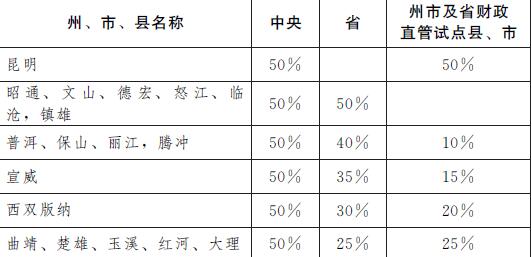 注:迪慶州由中央財政按照藏區標準直接進行補助,省和迪慶不再安排配套資金。