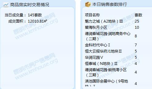 2016年8月20日昆明商品房成交145套 面積12010.81平米