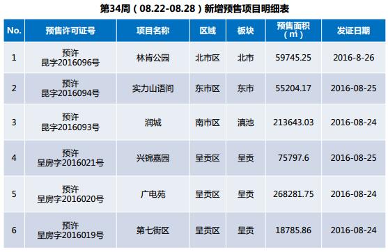 本周新增預售證6個,預售面積69.16萬方;位于北市區、東市區、南市區和呈貢區。