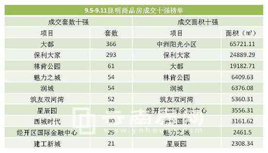上周(2016.9.5-2016.9.11)昆明商品房成交十強榜單