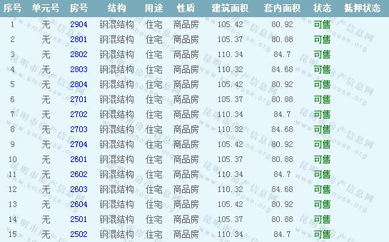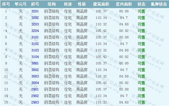 依據《云南省商品房銷售明碼標價實施細則》,商品房經營者應當在商品房交易(銷售)場所的醒目位置放置標價牌、價目表或者價格手冊,有條件的可同時采取電子信息屏、多媒體終端或電腦查詢等方式。商品房銷售明碼標價應當做到價目齊全,標價(示)內容真實明確、字跡清晰、標示醒目,并標示價格主管部門12358投訴舉報電話。準售房源信息如下: