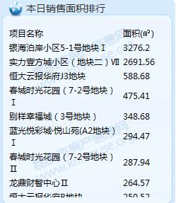 截至9月15日23:15,昆明市房產信息網成交數據顯示,2016年9月15日昆明成交商品房套數為103套。較之昨天的309套,減少了206套;成交面積10245.01平米。今日成交套數排行前三的項目分別是:10245.01:25套;銀海泊岸小區5-1號地塊Ⅰ:25套;別樣幸福城(3號地塊):10套;龍鼎財智中心Ⅱ:7套。成交面積排行前三的項目分別是:銀海泊岸小區5-1號地塊Ⅰ,成交面積:3276.2㎡;實力壹方城小區(地塊二)Ⅶ,成交面積:2691.56㎡;恒大云報華府J3地塊,成交面積588.68㎡。