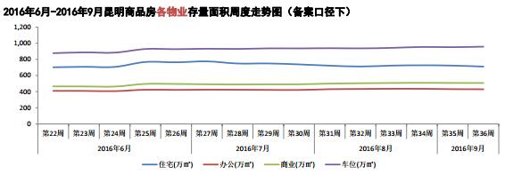 本周住宅成交面積12.49萬方,辦公成交面積1.49萬方,商業成交面積1.84萬方,車位成交面積1.50萬方。本周商品房總存量面積為2603.59萬方。