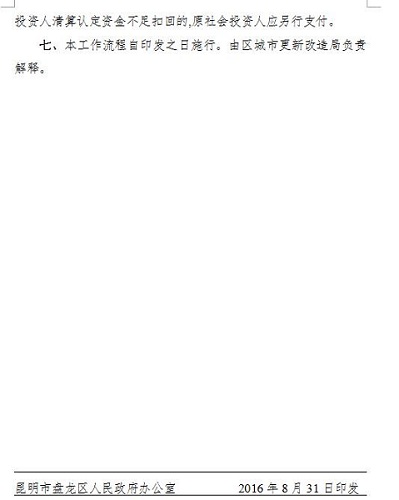 9月14日,盤(pán)龍區(qū)城市更新改造局發(fā)布了“《盤(pán)龍區(qū)社會(huì)投資人參與盤(pán)龍區(qū)城市更新改造項(xiàng)目退出工作流程(試行)》盤(pán)政辦通〔2016〕108號(hào)”的文件,文件中提到社會(huì)投資人退出城市更新改造局的方式,資金結(jié)算退補(bǔ)、解除合作協(xié)議等工作流程,具體政策原文如下: