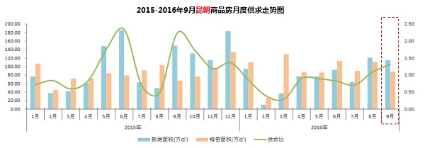 【昆明-月度供銷】“金九”未現(xiàn),供求下降,供求比持續(xù)上升