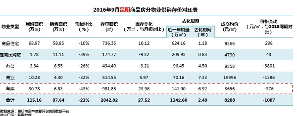 【昆明-物業(yè)結(jié)構(gòu)】各物業(yè)銷量均有下降,商辦車庫存壓力巨大,短期難以去化