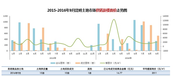 【土地金額】 9月昆明土地吸金16.77億元,成交521.61畝