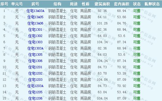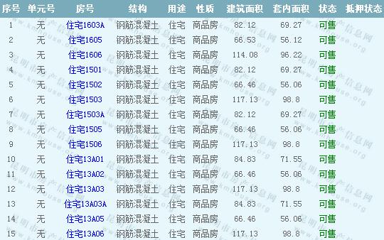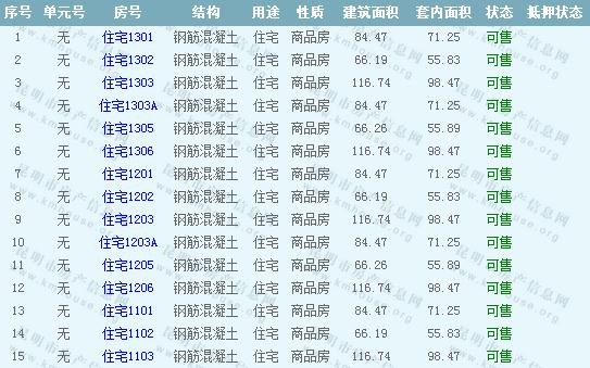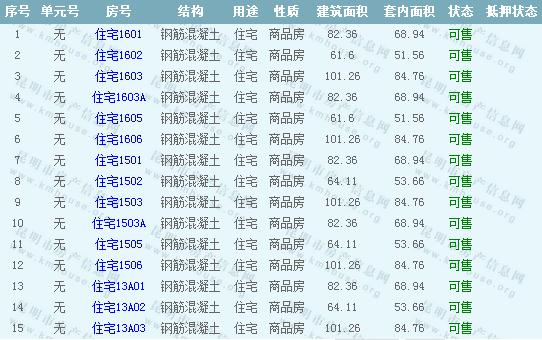 第三城紫香園1棟準(zhǔn)售房源: