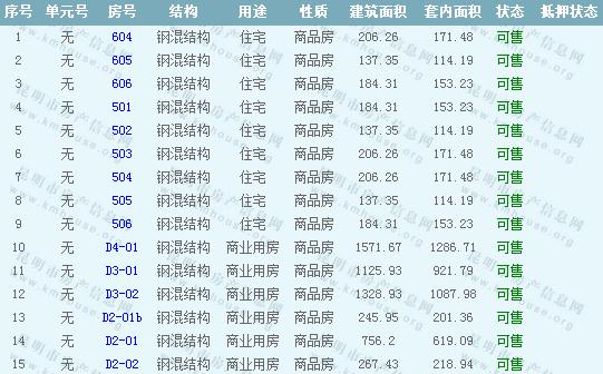 人民路壹號廣場一期商品房準售房源公示:3幢、4幢、6幢