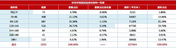 本周成交集中于70-90㎡、 90-120㎡、 120-144㎡三個面積段,分別占全周成交套數(shù)的21.13%、 35.58%及26.72%,各面積段起伏不大。