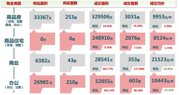 本周商品住宅成交面積24.89萬平米,環比上漲9.34%,成交套數為2076套,環比上漲7.51%;商品住宅成交均價為8524元/平方米,環比略漲1.73%。本周無項目取得新預售證。