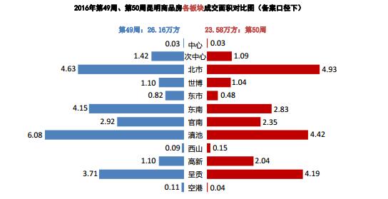 本周商品房成交前三板塊為:北市、滇池和呈貢,成交面積分別為4.93萬方、4.42萬方和4.19萬方。