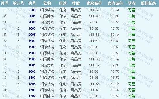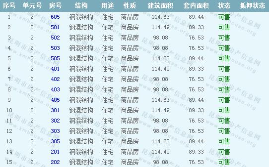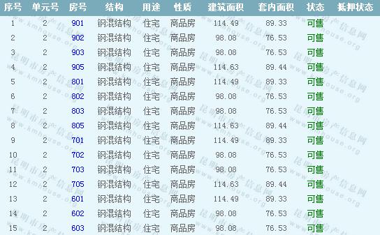 16棟準(zhǔn)售房源信息:
