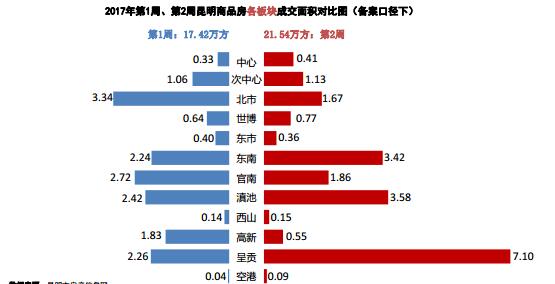 本周商品房成交前三板塊為:呈貢、滇池和東南板塊,成交面積分別為7.10萬方、3.58萬方和3.42萬方。