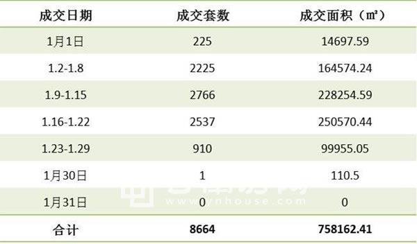 從單日成交情況來看,1月最后5天正值春節長假期間,雖然昆明有不少項目在假期間都不打烊,但樓市成交仍然受到假期的影響,春節前5天有4天成交掛零,剩余一天也只有備案了1套商品房,成交面積僅110平方米。事實上,在除夕前一天,昆明商品房成交套數和面積就驟然下滑,成交套數跌至數十套,成交面積僅2000多平方米。從除夕開始,樓市成交就持續“冰封”。