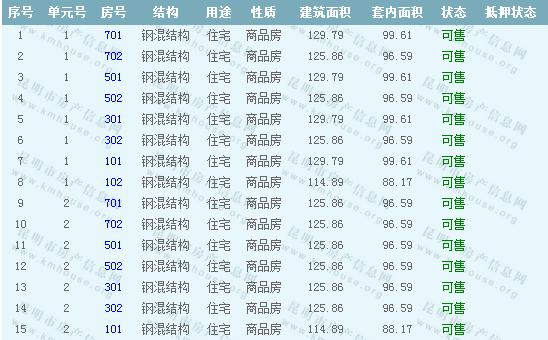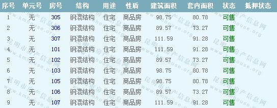 依據《云南省商品房銷售明碼標價實施細則》,商品房經營者應當在商品房交易(銷售)場所的醒目位置放置標價牌、價目表或者價格手冊,有條件的可同時采取電子信息屏、多媒體終端或電腦查詢等方式。商品房銷售明碼標價應當做到價目齊全,標價(示)內容真實明確、字跡清晰、標示醒目,并標示價格主管部門12358投訴舉報電話。滇池ONE三期11號地塊準售房源信息如下: