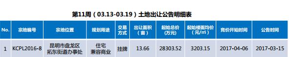 第11周供應土地1宗,合計13.66畝,為住宅兼容商業用地。