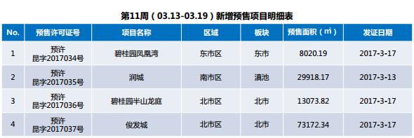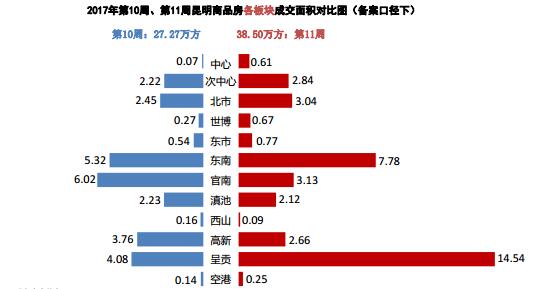 本周商品房成交前三板塊為:呈貢、東南和官南板塊,成交面積分別為14.54萬方、7.78萬方和3.13萬方。
