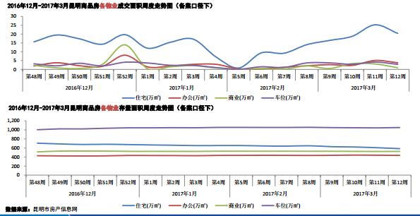 本周住宅成交20.41萬方,辦公成交3.76萬方,商業成交0.95萬方,車位成交2.88萬方。商品房總存量為2596.67萬方。