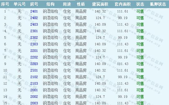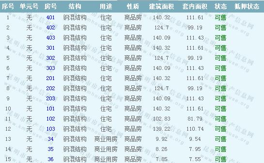 萬科公園里二期3棟房源: