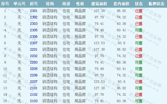 依據《云南省商品房銷售明碼標價實施細則》,商品房經營者應當在商品房交易(銷售)場所的醒目位置放置標價牌、價目表或者價格手冊,有條件的可同時采取電子信息屏、多媒體終端或電腦查詢等方式。商品房銷售明碼標價應當做到價目齊全,標價(示)內容真實明確、字跡清晰、標示醒目,并標示價格主管部門12358投訴舉報電話。綠城春江明月二期準售房源信息如下: