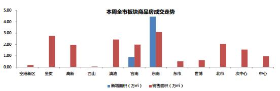 成交板塊對比:本周東南板塊在海倫國際、中航城等項目大量備案的帶動下,成為成交榜首區域。