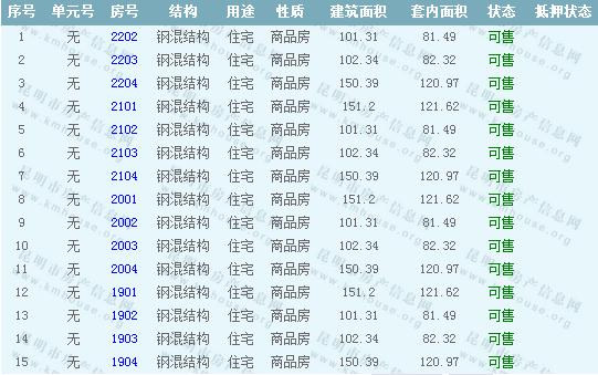 依據《云南省商品房銷售明碼標價實施細則》,商品房經營者應當在商品房交易(銷售)場所的醒目位置放置標價牌、價目表或者價格手冊,有條件的可同時采取電子信息屏、多媒體終端或電腦查詢等方式。商品房銷售明碼標價應當做到價目齊全,標價(示)內容真實明確、字跡清晰、標示醒目,并標示價格主管部門12358投訴舉報電話。恒大云報華府E-1地塊40棟準售房源信息如下: